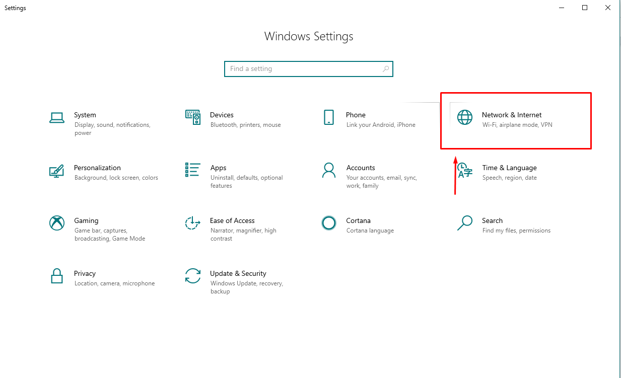 After thatโs done, press on the Start button and click setting. Once we are in, click on Network & Internet and check at the bottom of the list for Data Usage.